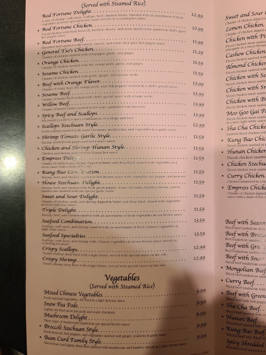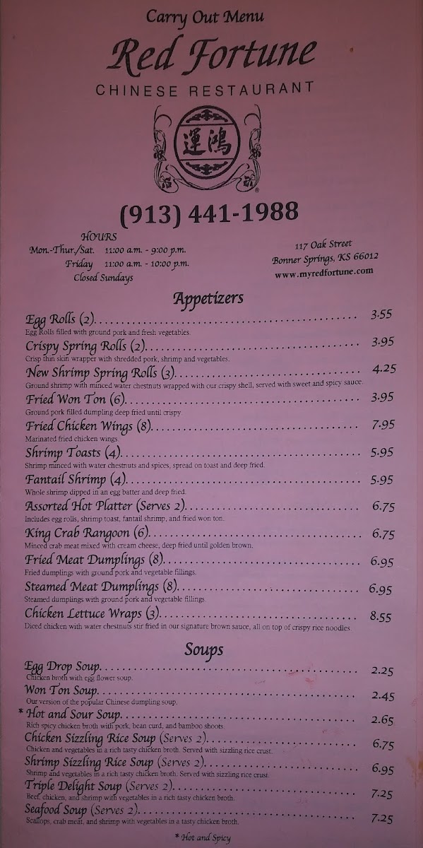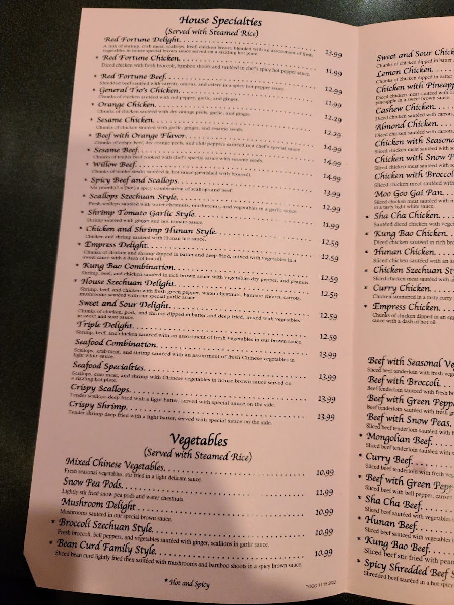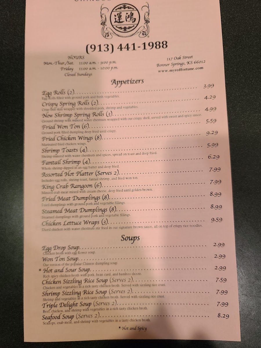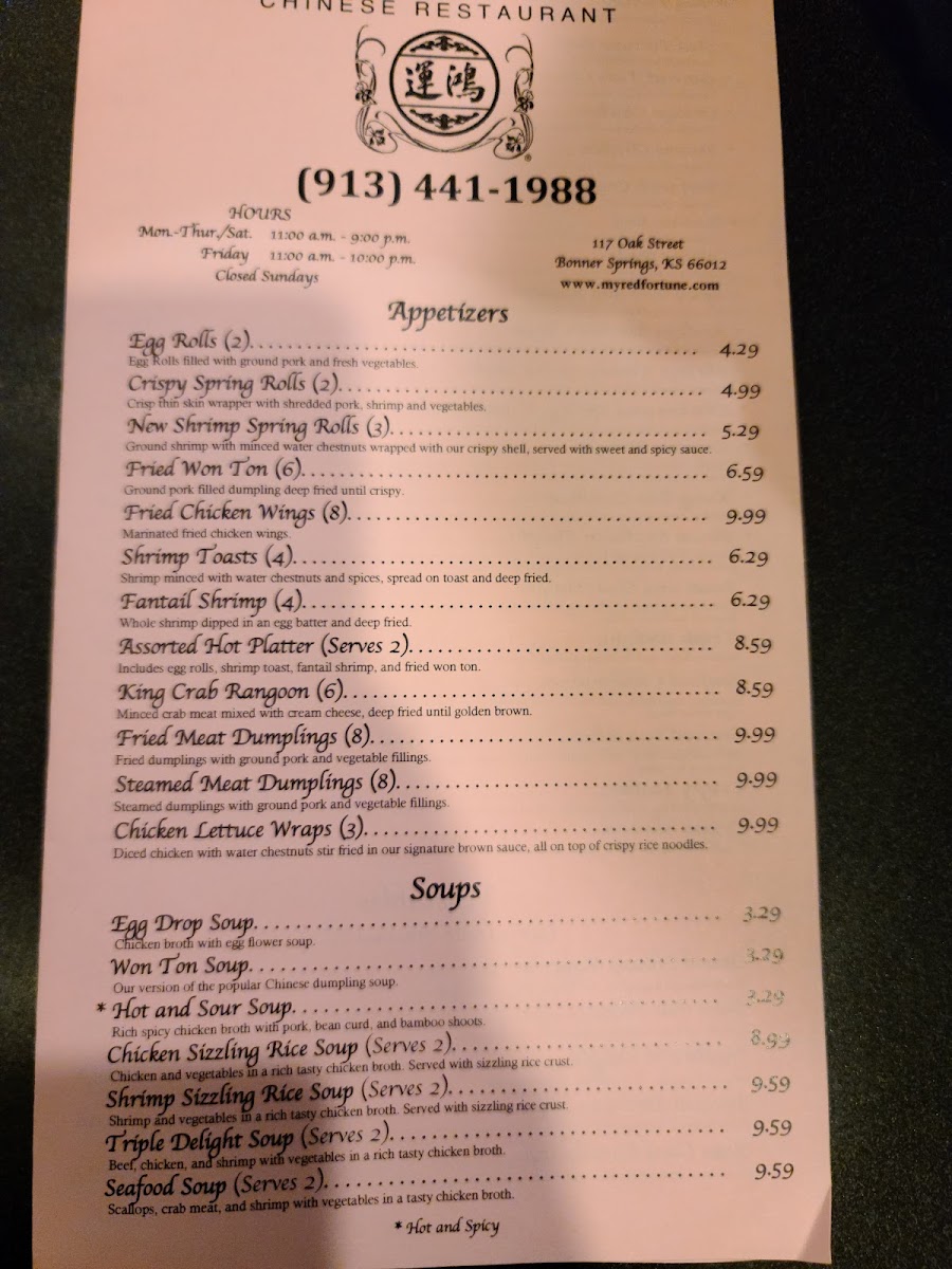 The menu at Red Fortune Chinese Restaurant offers a comforting selection of classic Chinese dishes that suit both casual meals and relaxed gatherings. You’ll find a range of options from fulfilling soups like egg drop and hot and sour to satisfying entrees such as spicy chicken and general tso’s chicken, all served in generous portions that invite sharing or saving for later.