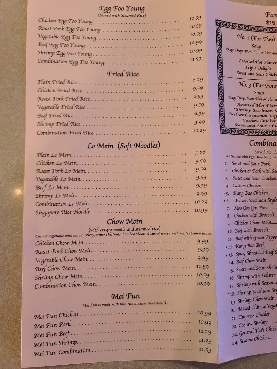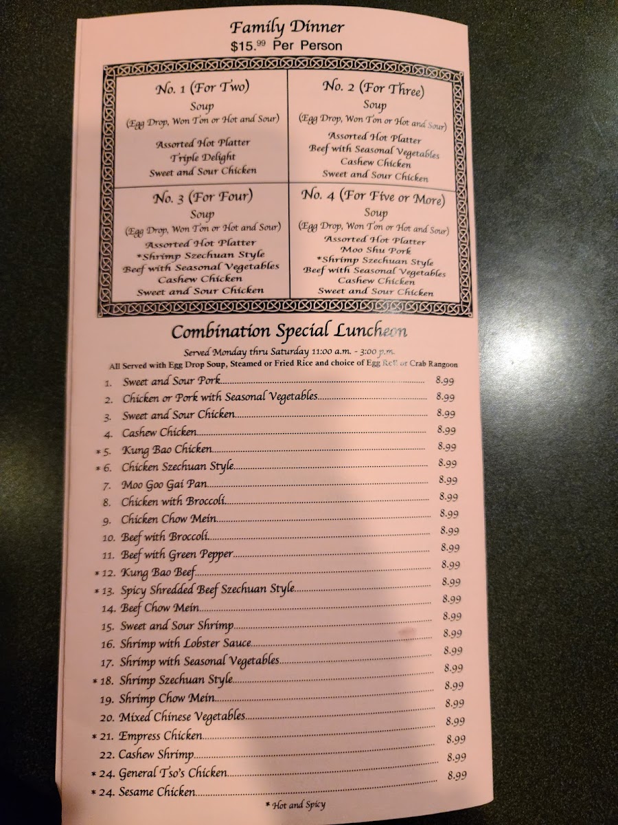 Whether you stop by for a quick lunch or settle in for a cozy dinner, the menu reflects an atmosphere that is warm and approachable. Dishes like chicken fried rice and combination lo mein make for well-rounded meals that balance familiar flavors with a touch of authentic taste. Lighter bites such as crab rangoon and egg rolls complement the heartier options, while a selection of drinks, including sake, offers a subtle pairing to the food.
